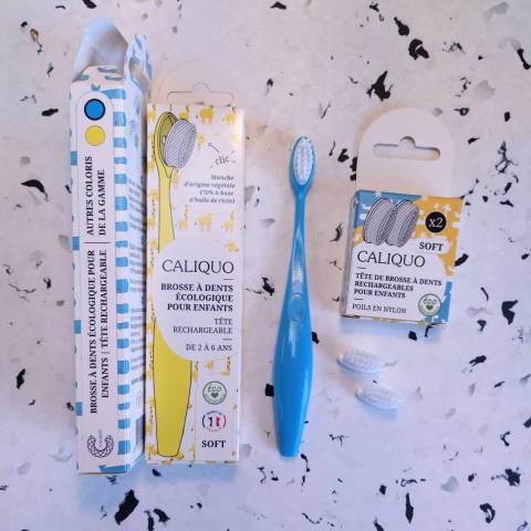 En plastique recyclé, le manche permet de ne renouveler que la tête pour garantir l'hygiène tout en réduisant le volume des déchets.